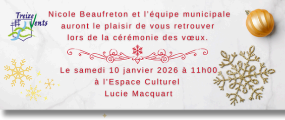 📢Les vœux du Maire se dérouleront samedi 10 janvier 2026 à 11h00 salle Lucie Macquart et pour cette raison l’agence postale et la mairie fermeront à 11h.